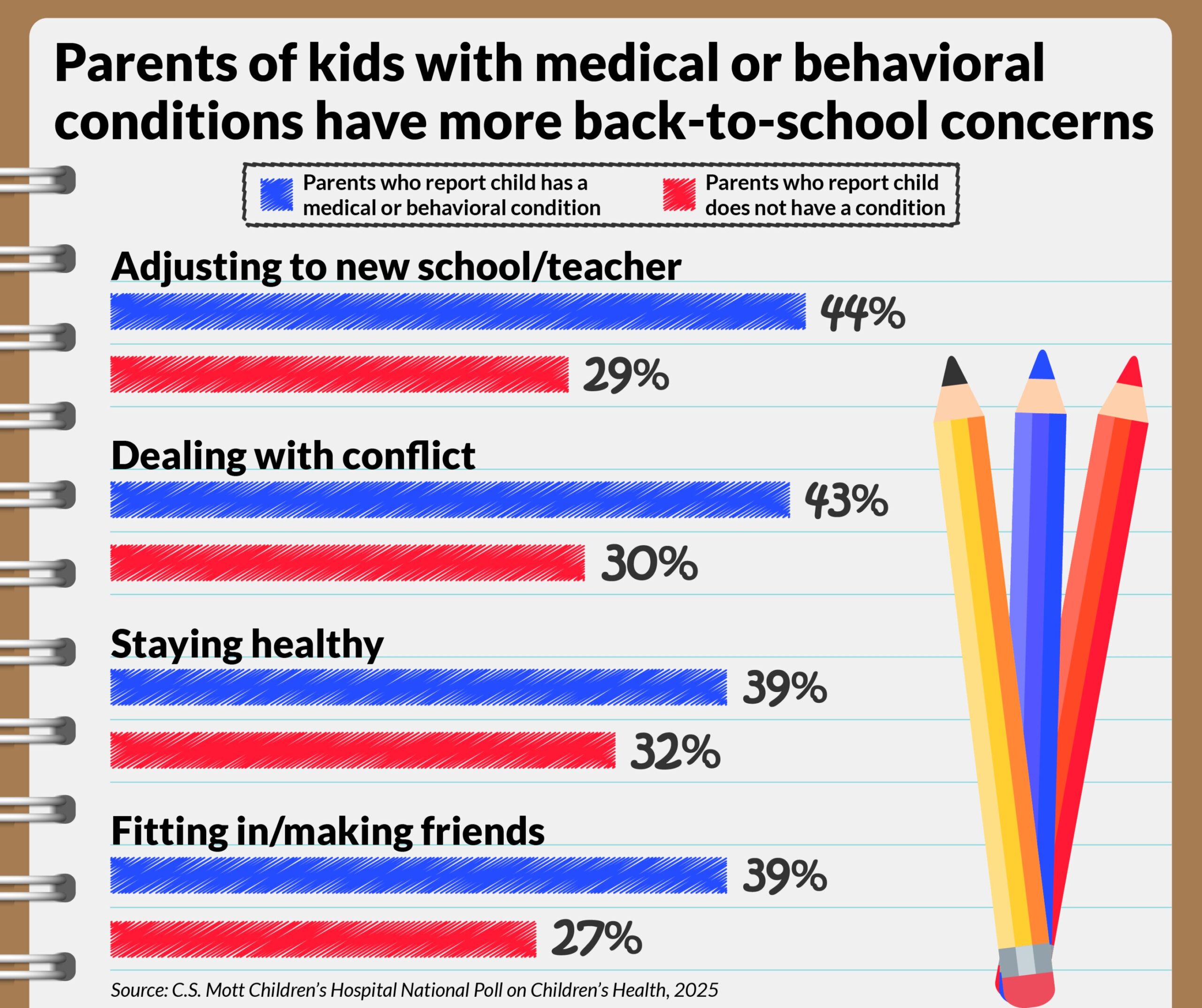 “It is fully pure for folks to really feel uneasy initially of the college yr, particularly when their youngster has a well being situation that provides one other layer of complexity,” stated Mott Ballot Co-Director and Mott pediatrician Susan Woolford, M.D.